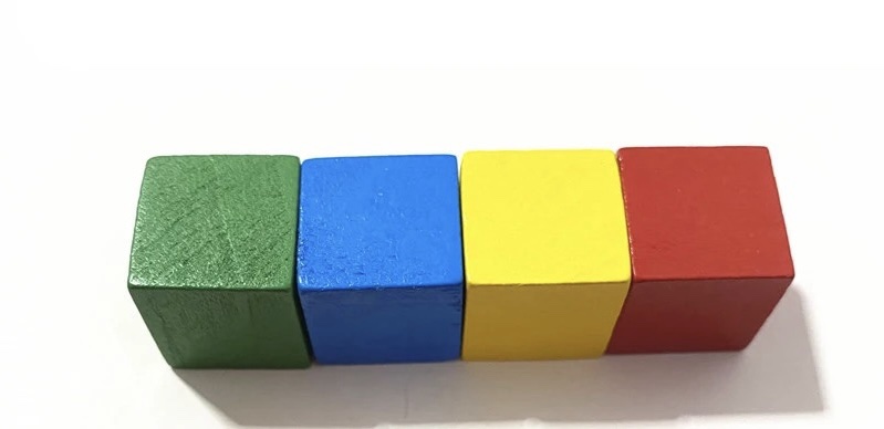Ühes komplektis on 2 punast, 2 sinist, 2 rohelist ja 2 kollast klotsi.